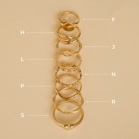 The majority of our rings come in sizes L, N, P & S. We've got this handy guide which can measure your ring size from your existing ring collection! Click here to view.